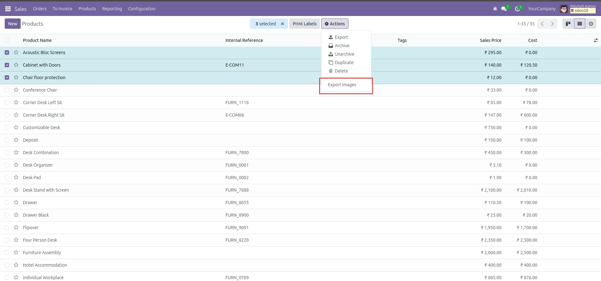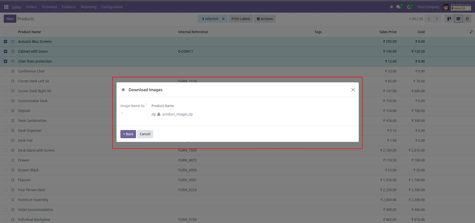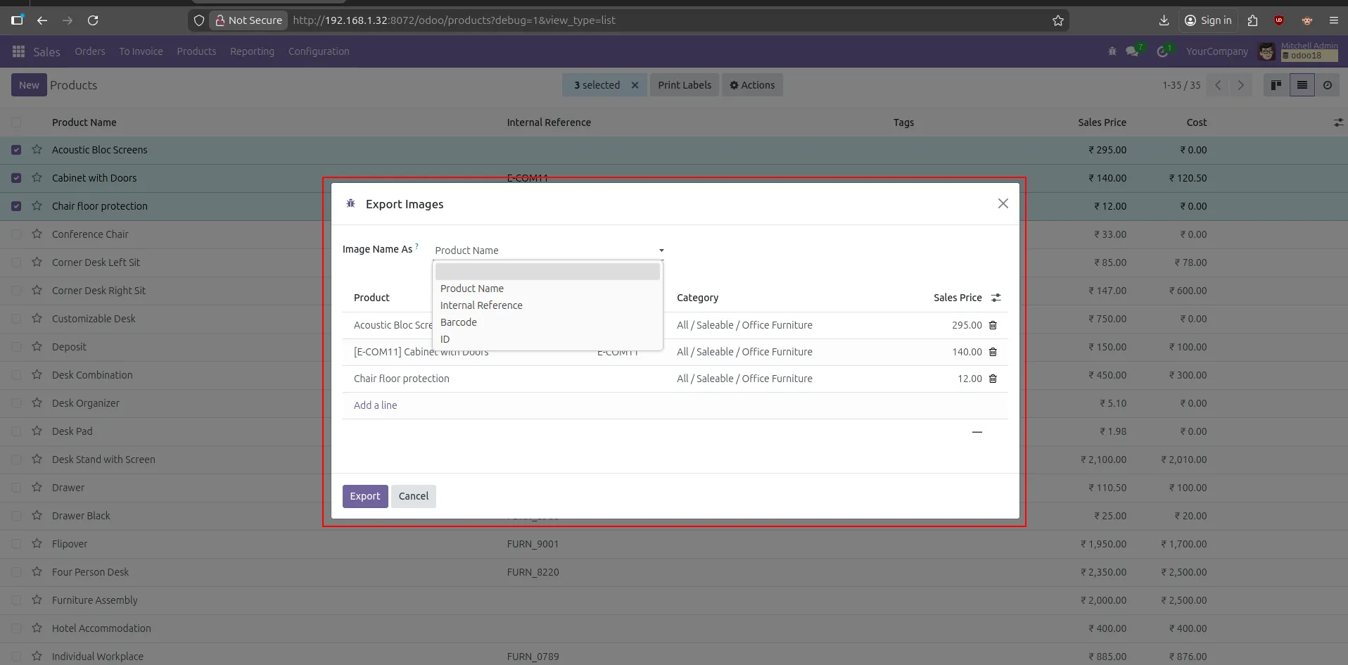 Export product images in bulk directly from Odoo list view