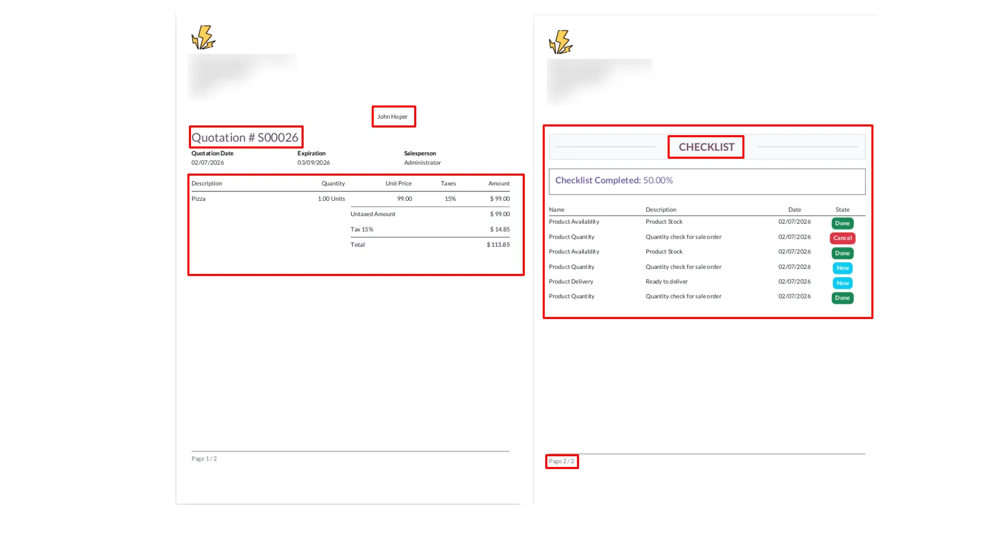 Print Sale Order and Quotation checklist reports with completion details