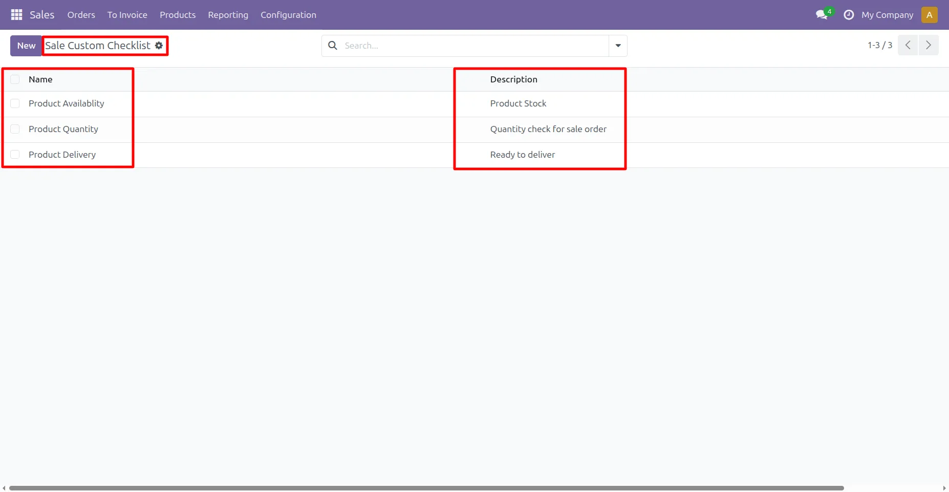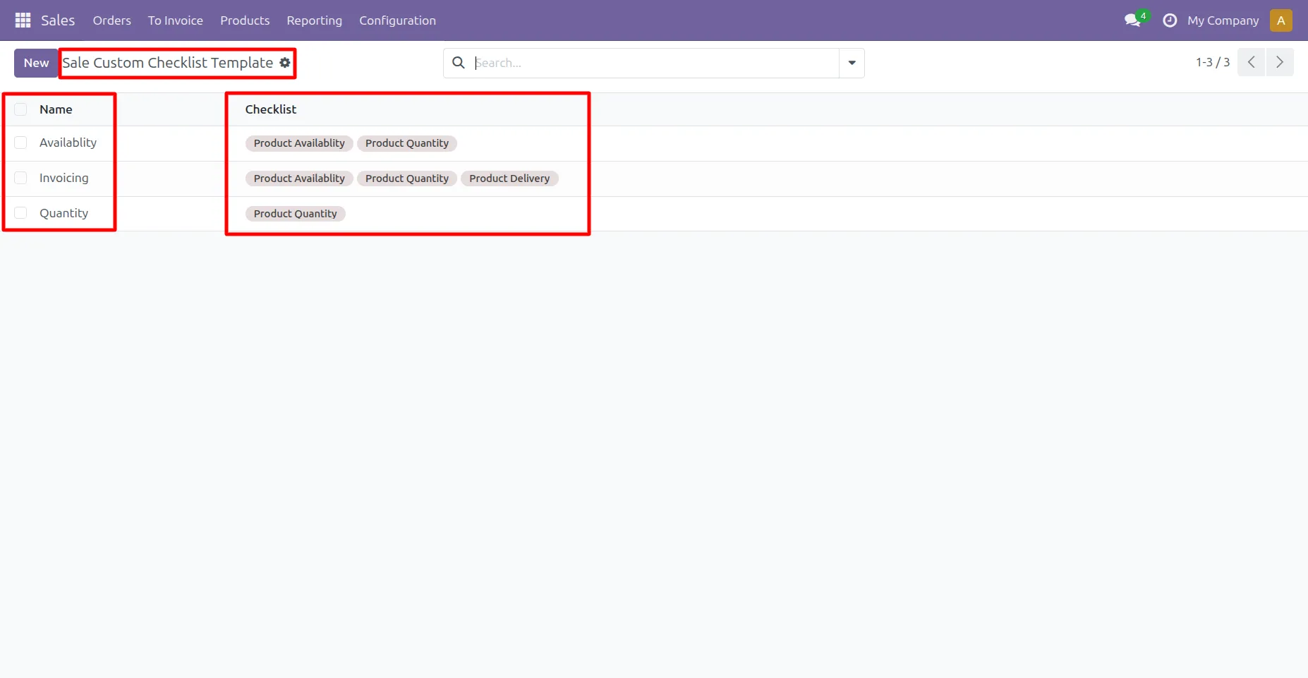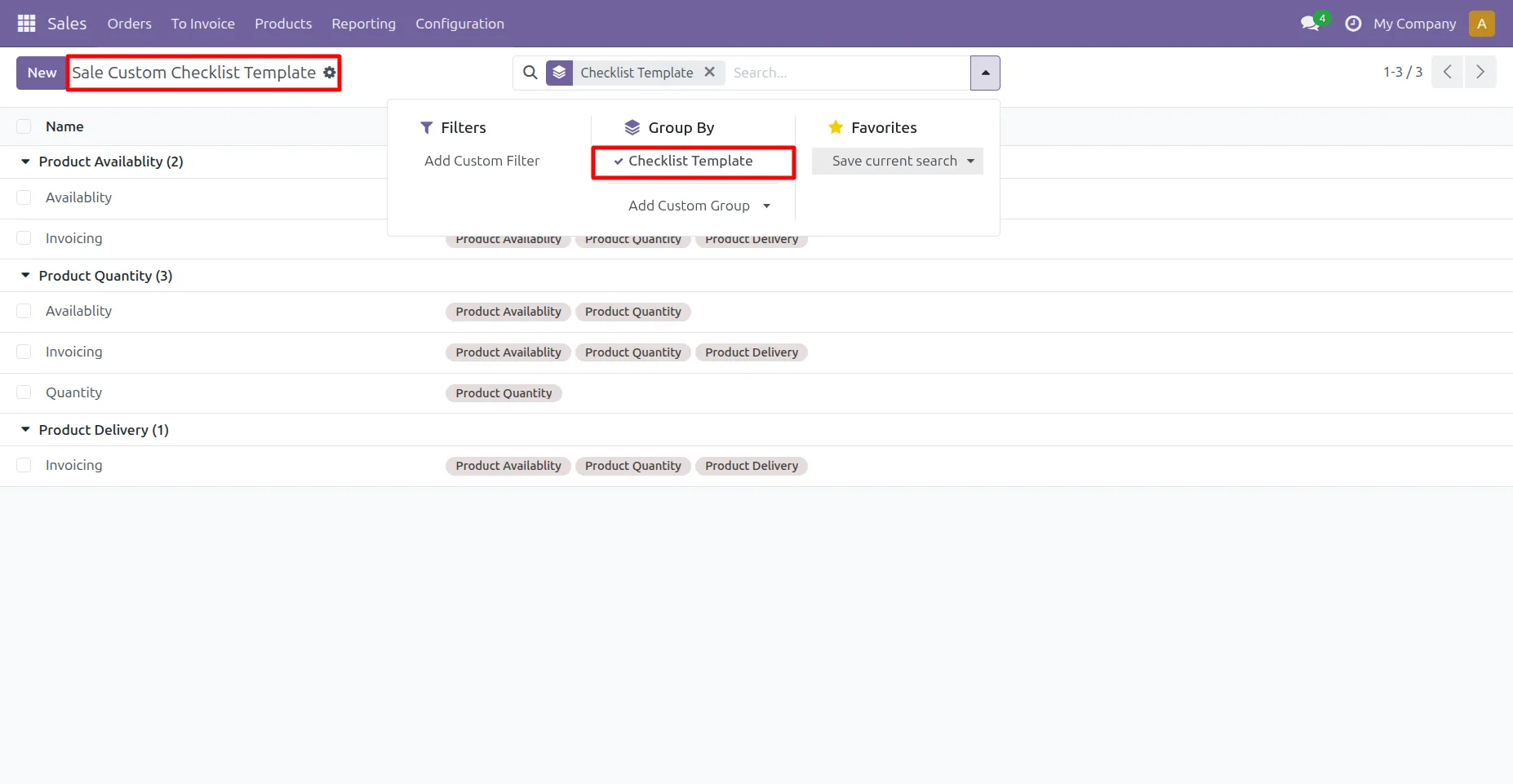 5. Go to Sale -> Configuration -> Sale Custom Checklist Template menu