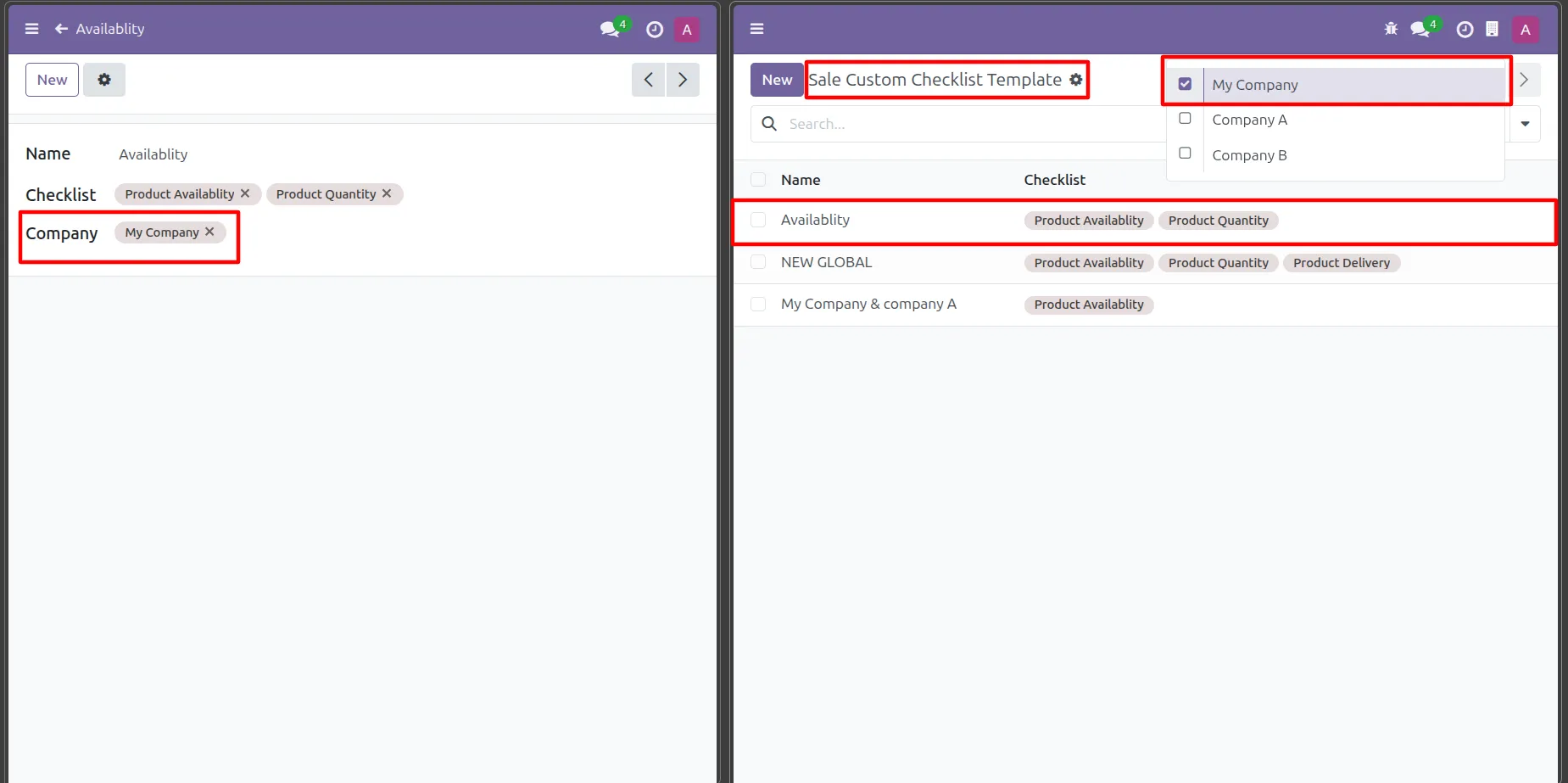 18. While creating a checklist template, if a company is selected, the template will be visible only within company that.