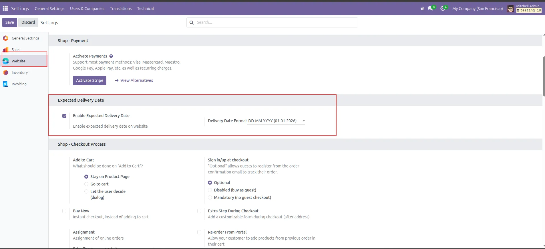Website Delivery Date Configuration from Odoo backend