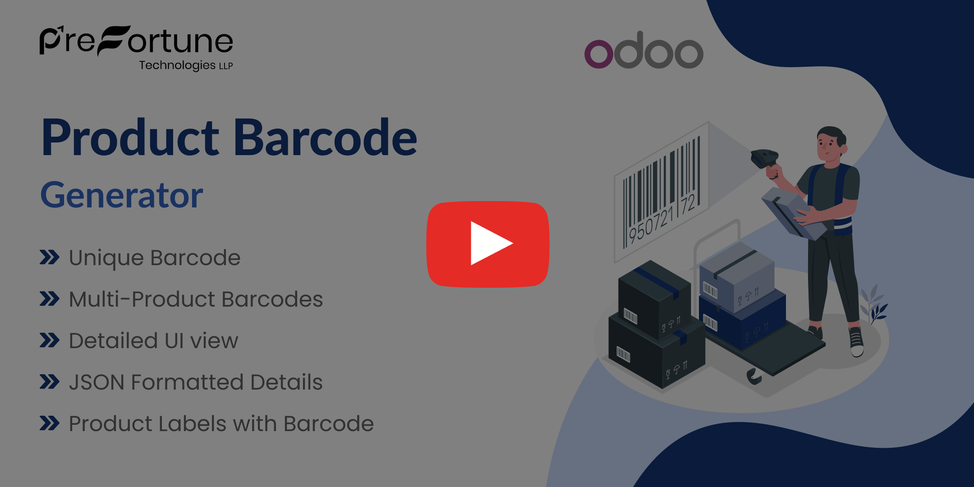 At PreFortune Technologies LLP, we're excited to introduce Odoo – Product Barcode Generator ,designed to streamline your product management process. With our innovative solution, each product is assigned a unique barcode, ensuring efficient tracking and management throughout its lifecycle.