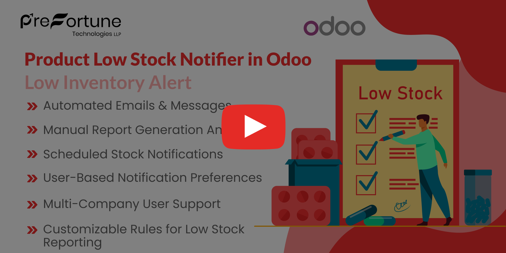 Our all-inclusive Odoo – Product Low Stock Notifier module is designed to help businesses proactively manage inventory by automating low stock alerts. This module enables real-time notifications via email and the Discuss module when product quantities fall below predefined thresholds, ensuring timely action to avoid stockouts. Users can configure scheduled checks, generate reports manually at any time, and customize alert preferences by company or user. With full support for multi-company environments and user-specific configurations, the module ensures that the right people receive the right information—no matter how complex your organizational structure. Businesses can also define custom rules for low stock reporting, offering flexibility and precision in inventory monitoring.