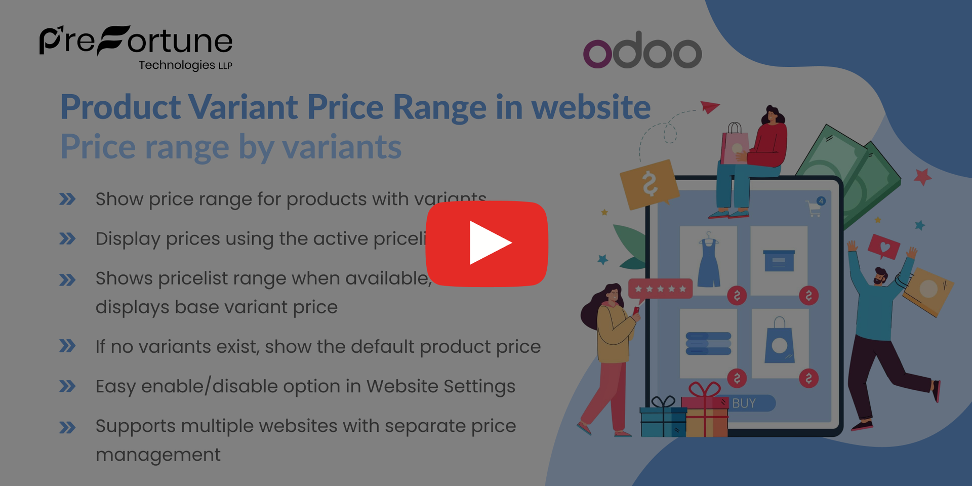 Our all-inclusive Odoo – Product Variant Price Range in website This module enhances your Odoo website by displaying accurate and dynamic product pricing. If a pricelist is applied, it shows the price range of product variants according to that pricelist, ensuring customers see the most relevant prices. If no pricelist is set, it automatically falls back to the base variant price. The module also supports multi-website environments, allowing you to manage and display correct pricing across different websites with ease.