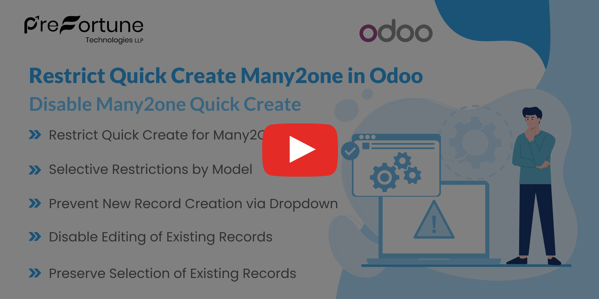 Restrict “Create” and “Create & Edit” in Many2one fields in Odoo to ensure clean, controlled data by allowing only selection from pre-approved records.